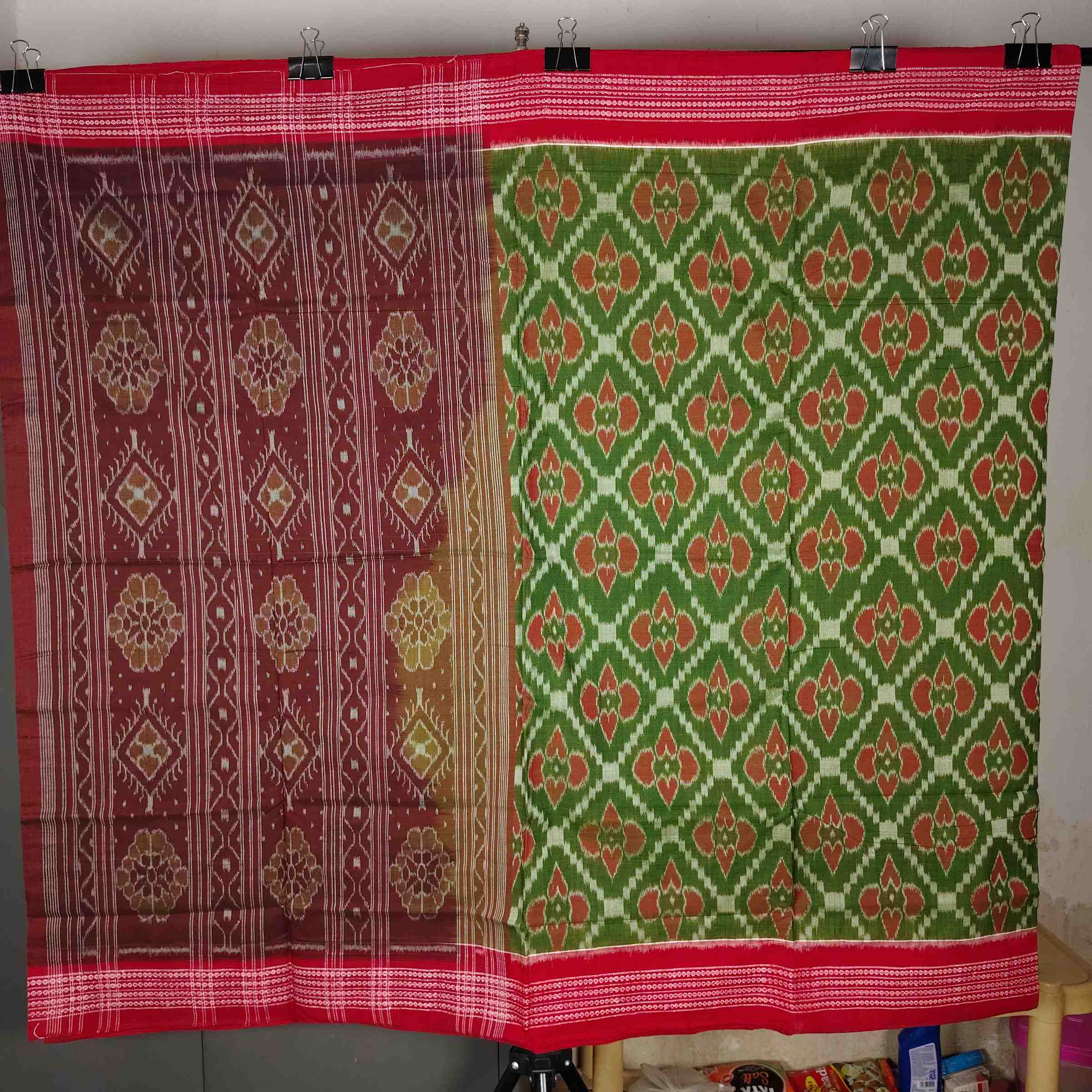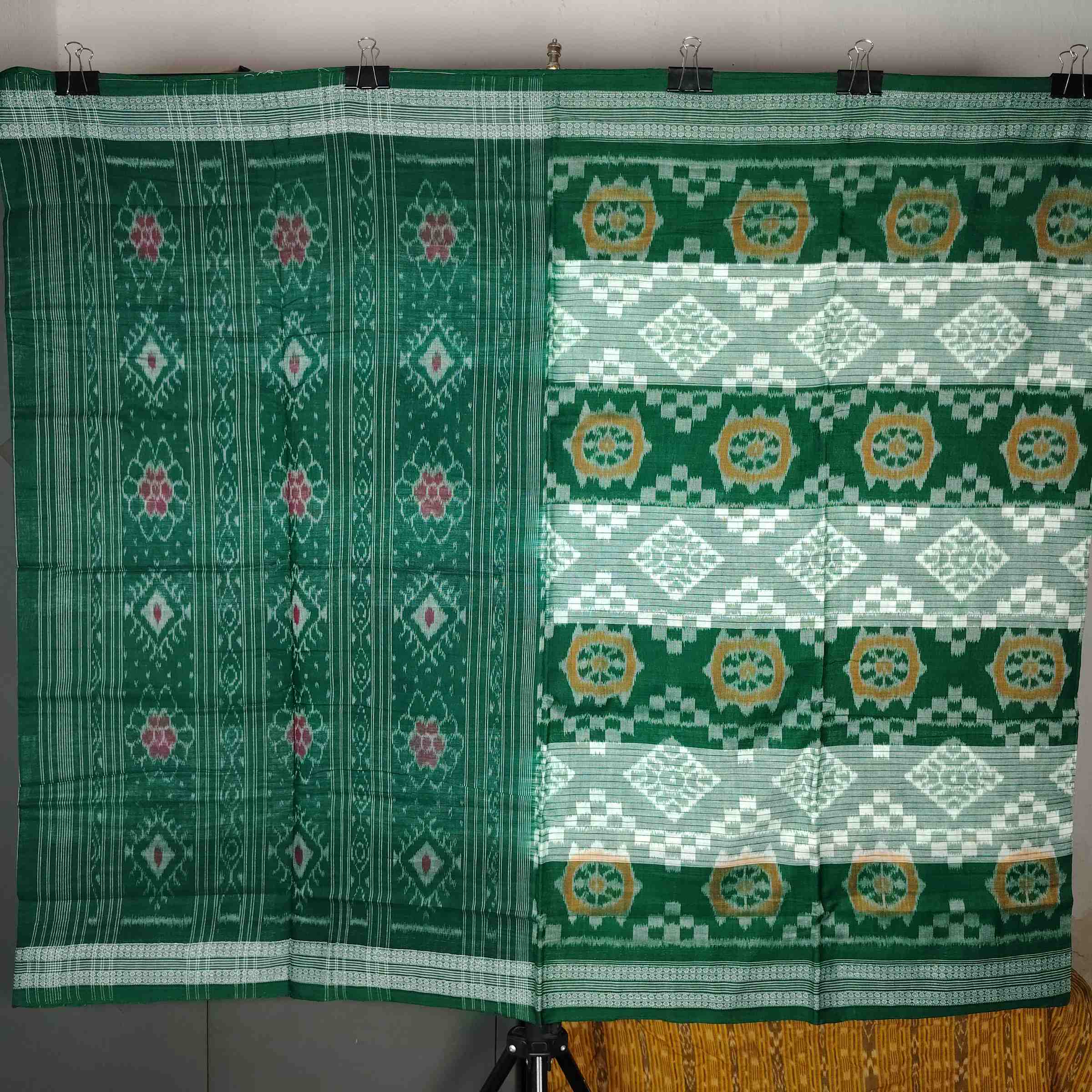 Dark Green Yellow Red Sapta Milan Cotton Saree