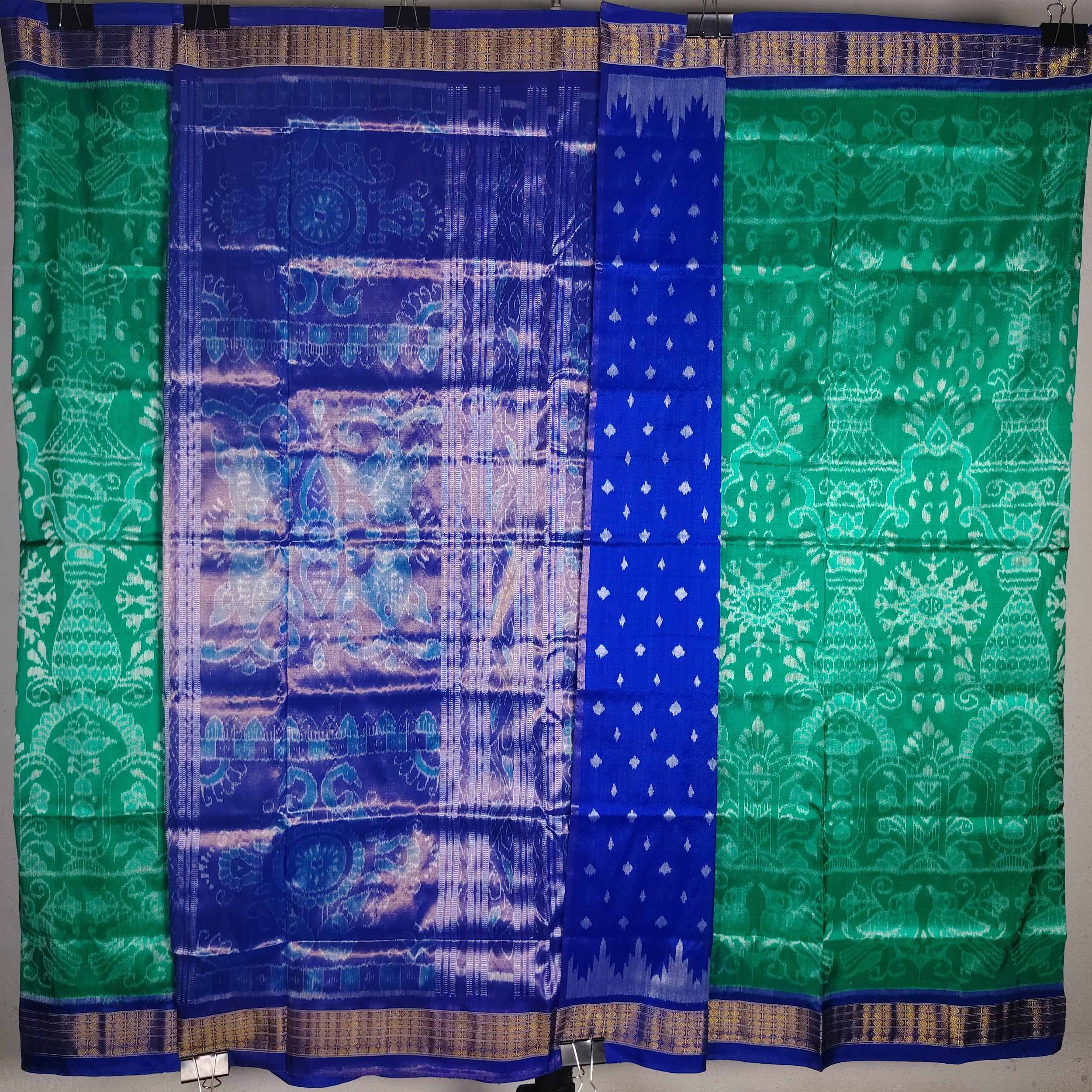 Green Blue Terracotta Sambalpuri Half Tissue Saree