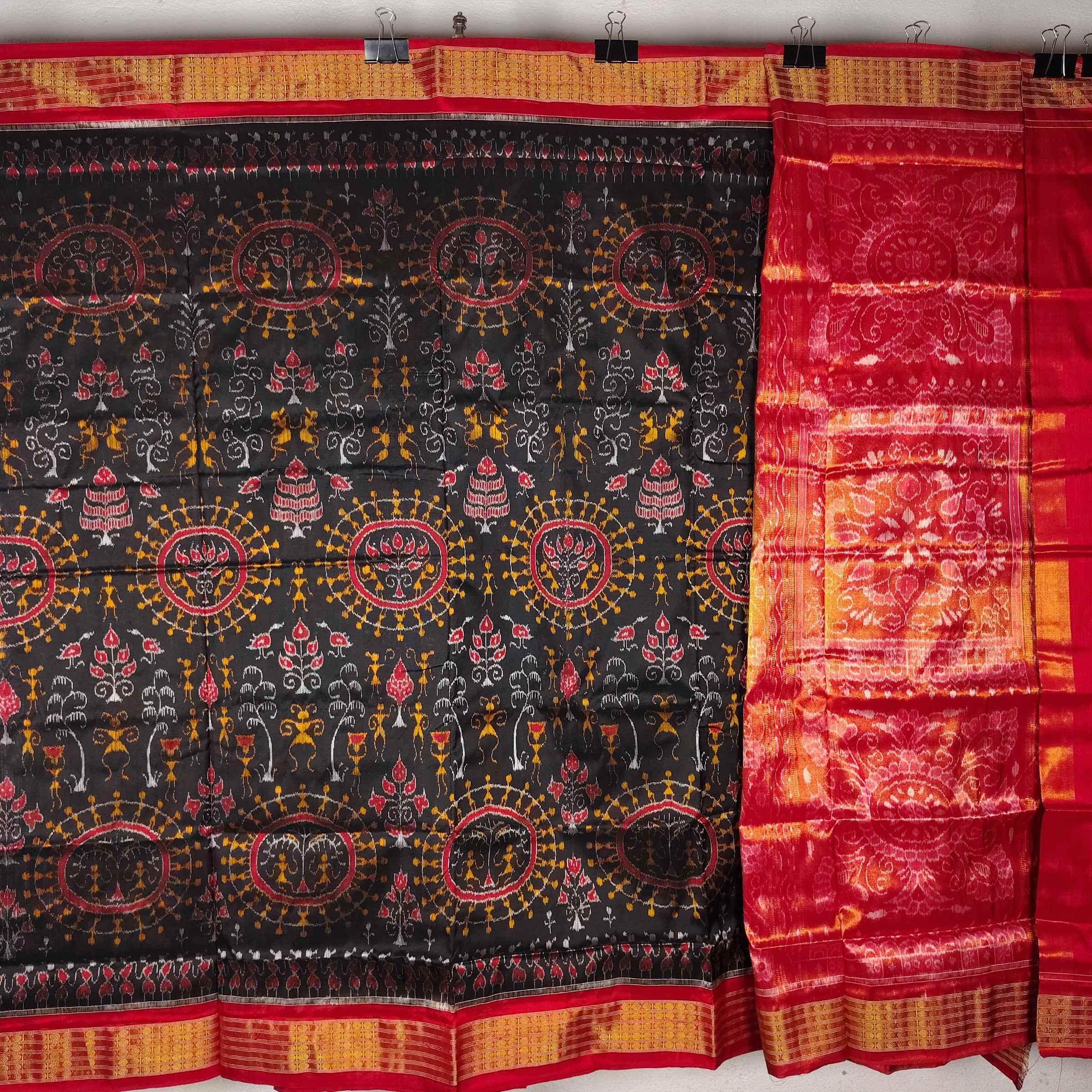 Black Red Terracotta Half Tissue Saree