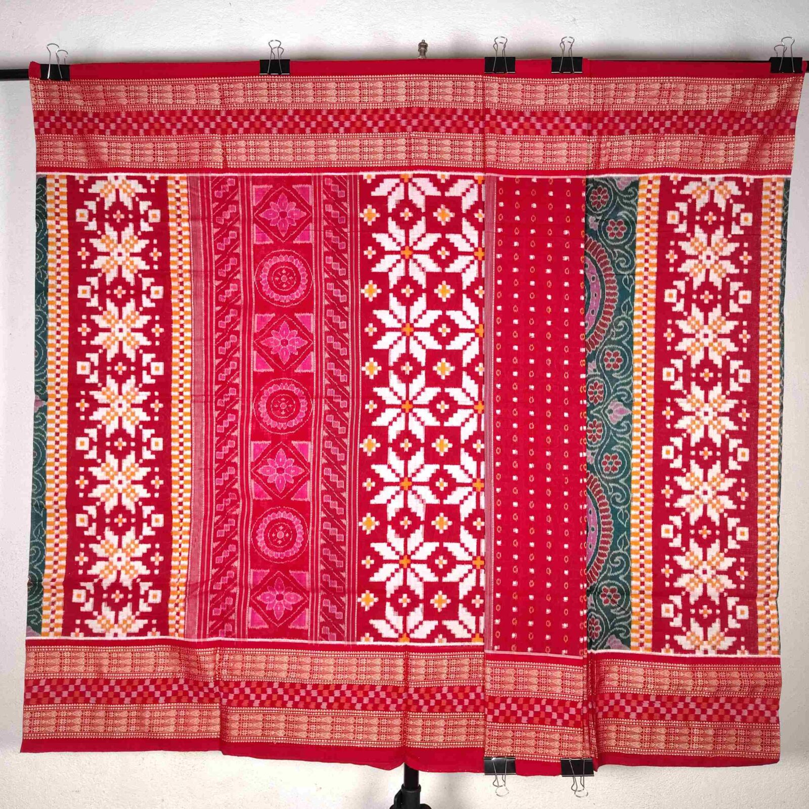 Red Green Star Milan Cotton Saree