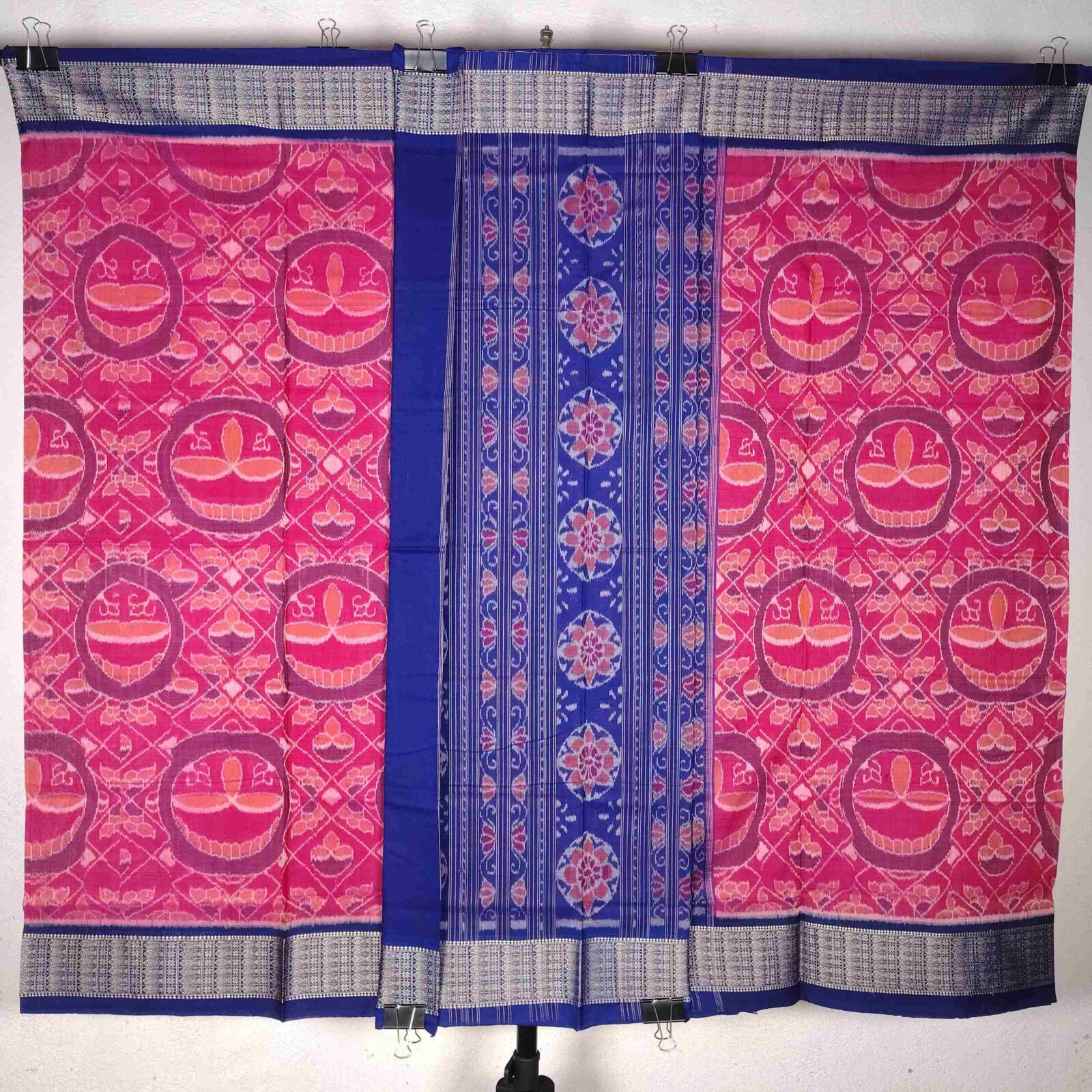 Blue Pink Dia Cotton Saree