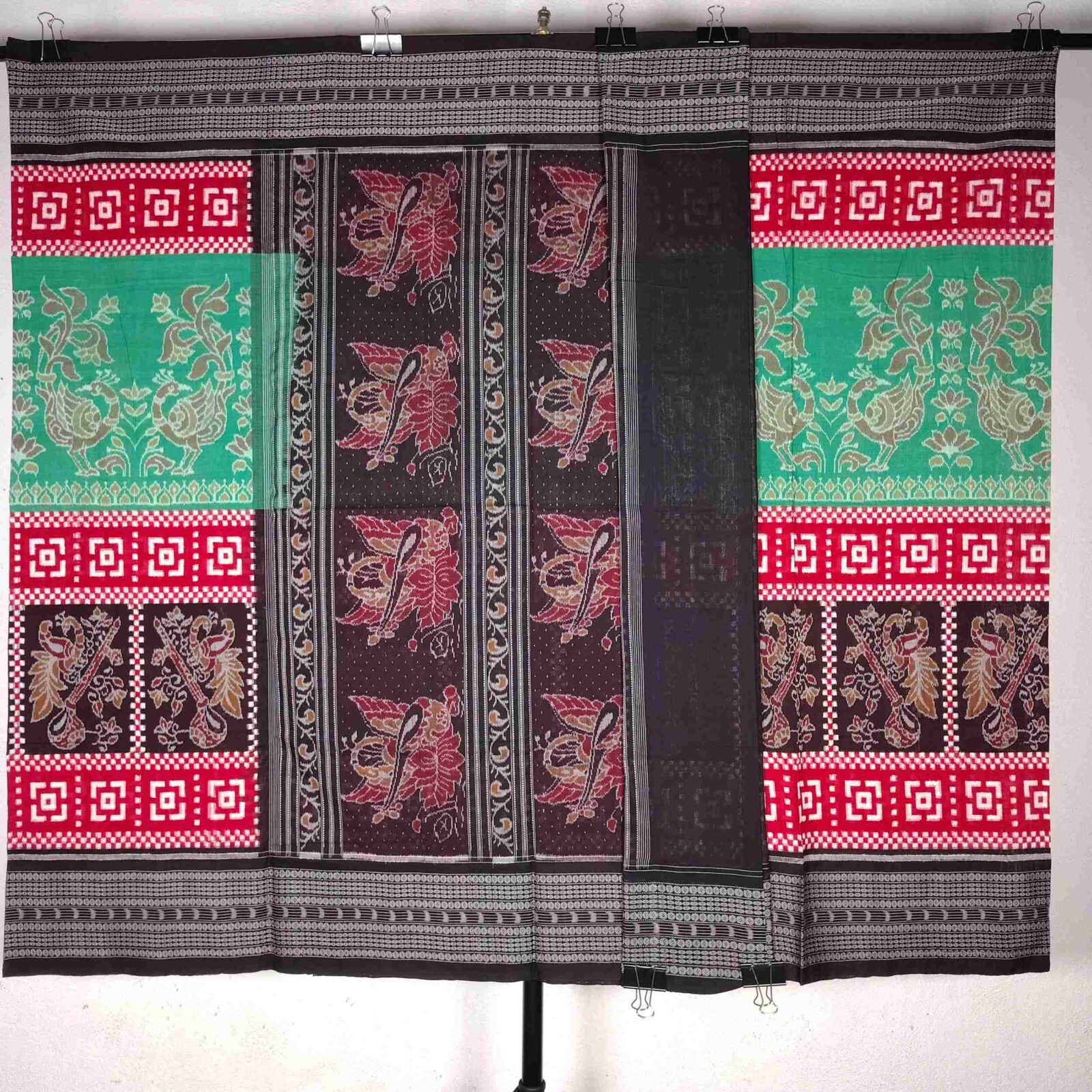 Green Red Black Peacock Milan Cotton Saree