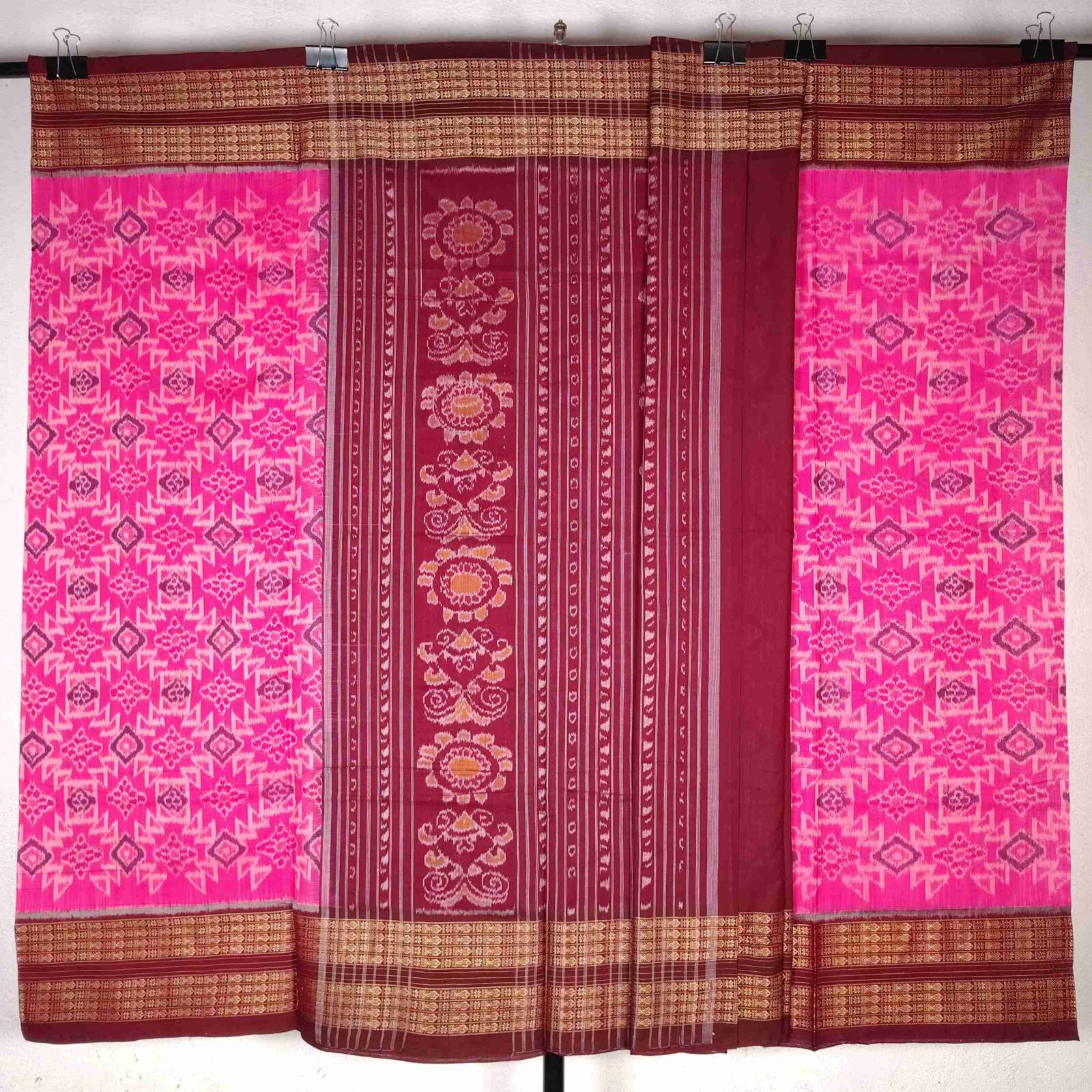 Pink Maroon Geometric Pattern Cotton Saree