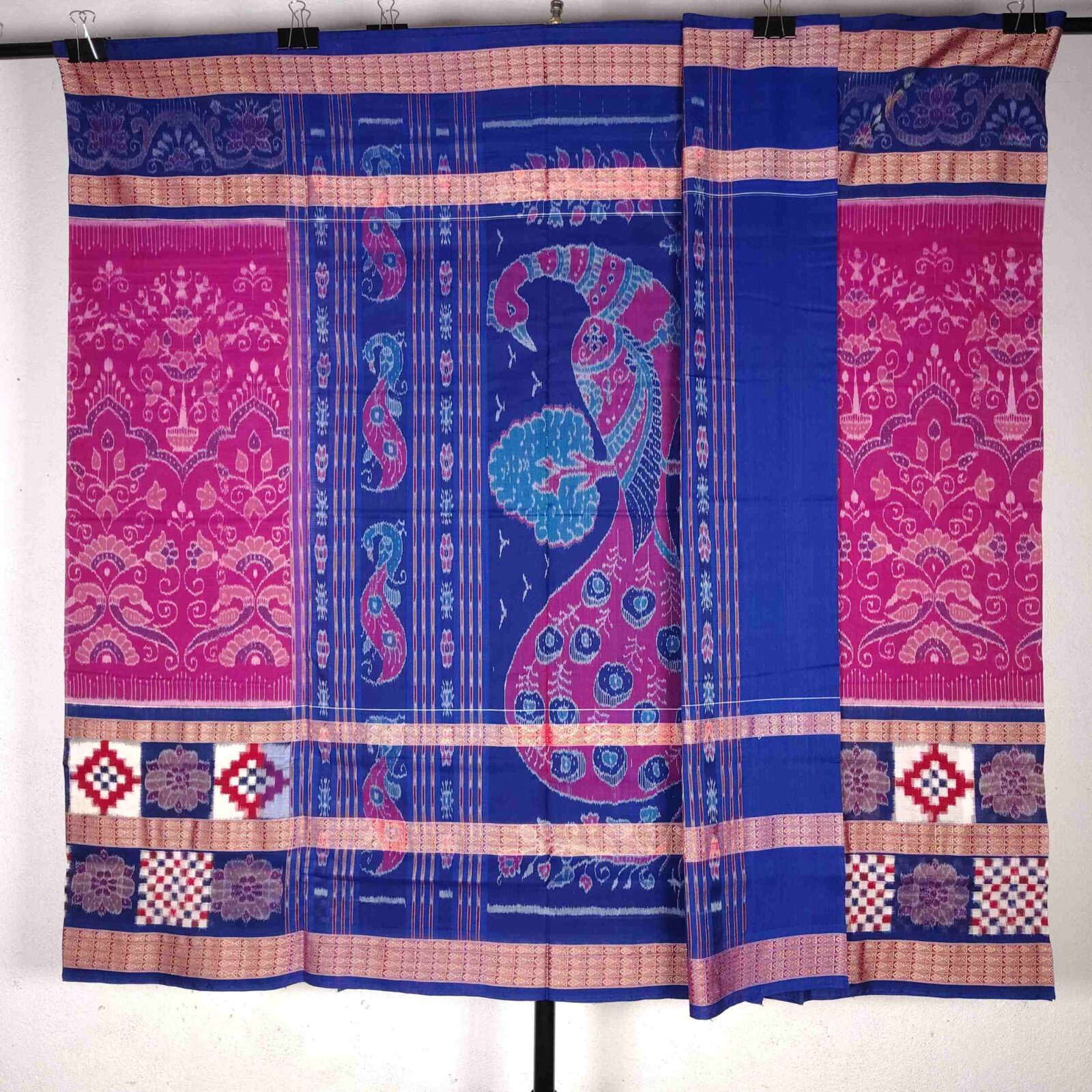 Magenta Blue Peacock Sapta Milan Cotton Saree