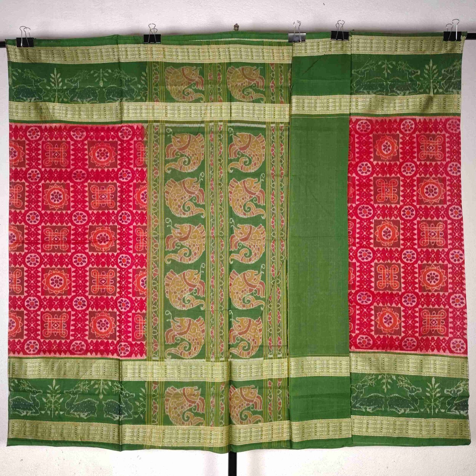 Red Green Flower Cotton Saree