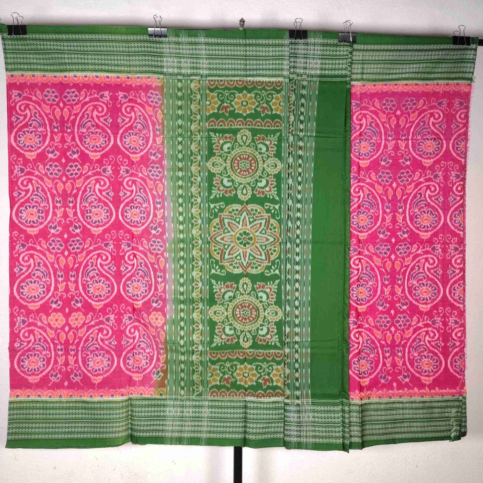 Pink Green Mehendi Pattern Cotton Saree