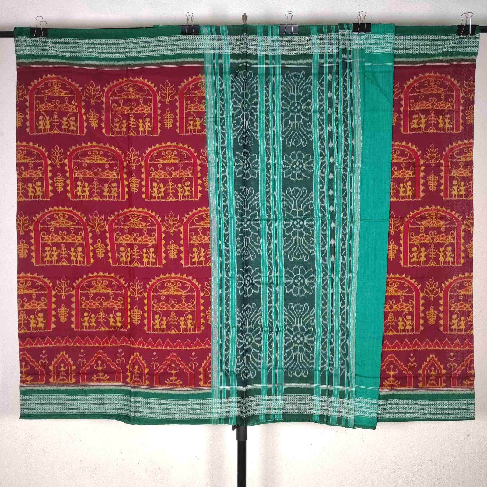 Red Green Terracotta Pattern Cotton Saree