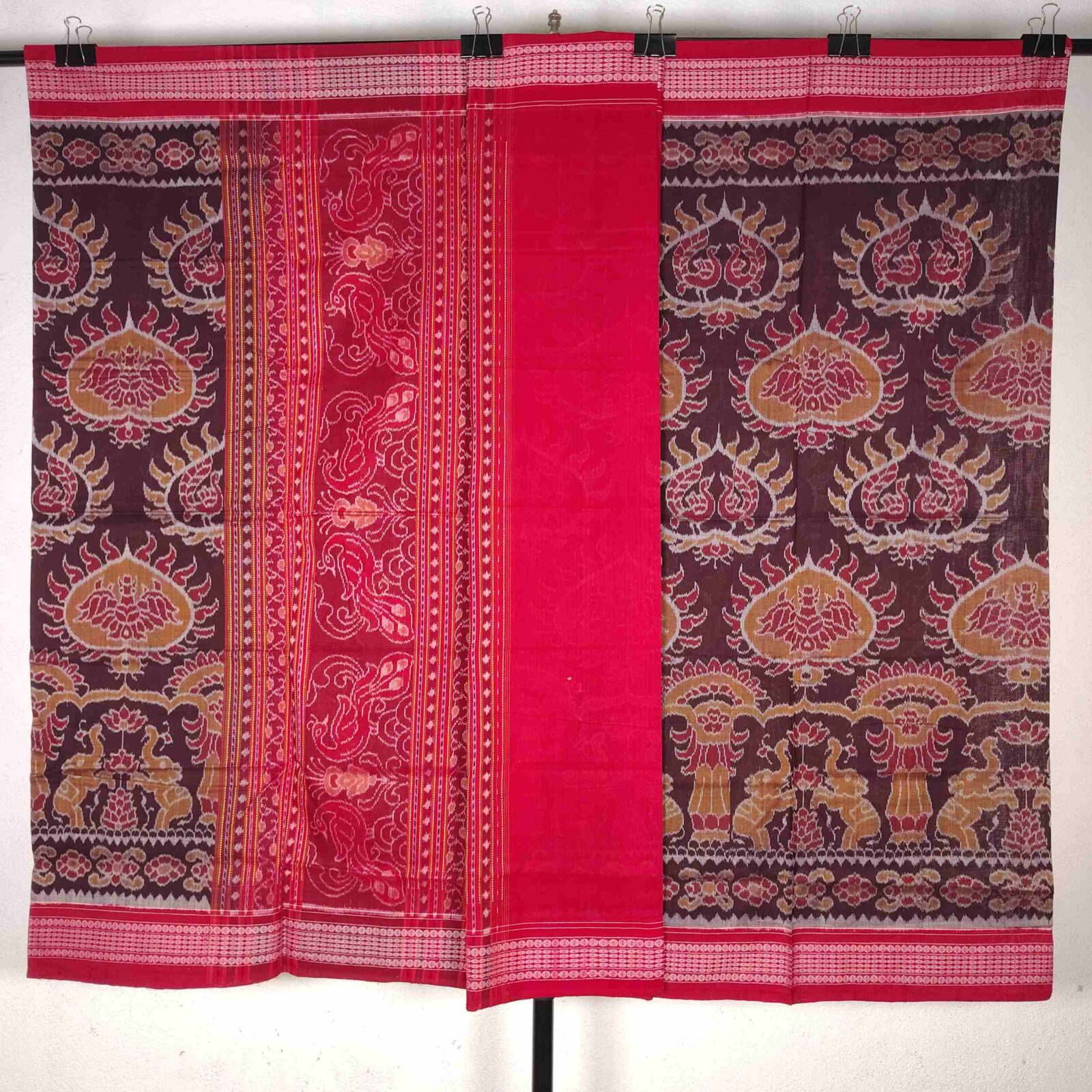 Coffee Red Elephant Peacock Cotton Saree