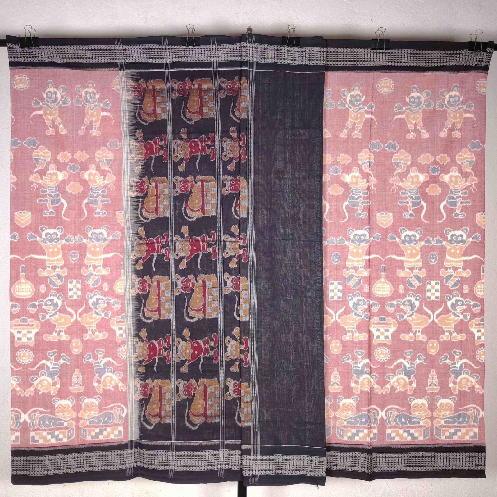 Light Pink Black Micky Mouse Cotton Saree
