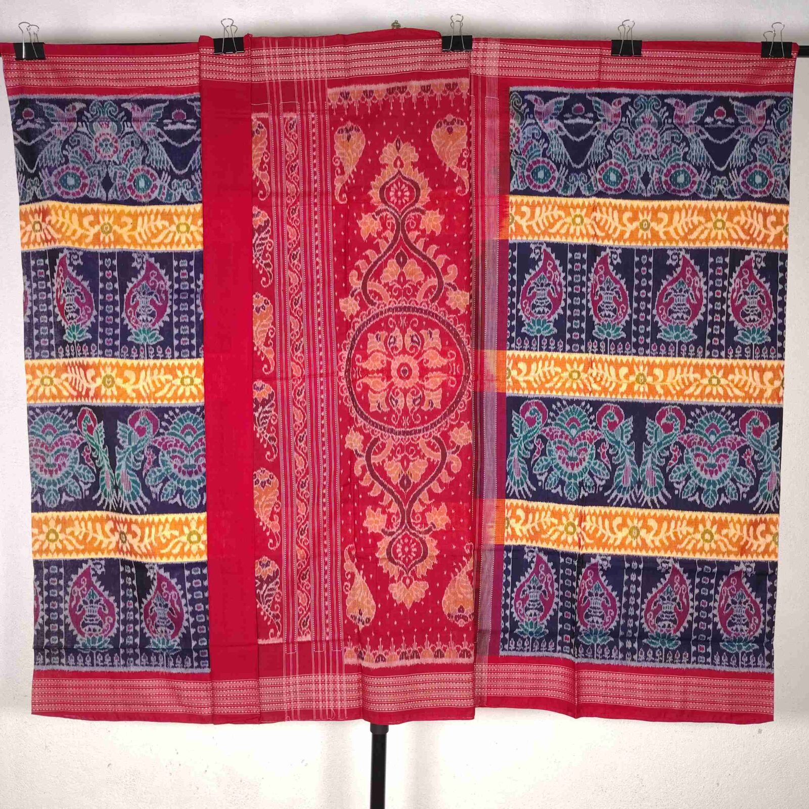 Black Yellow Red Peacock Cotton Saree