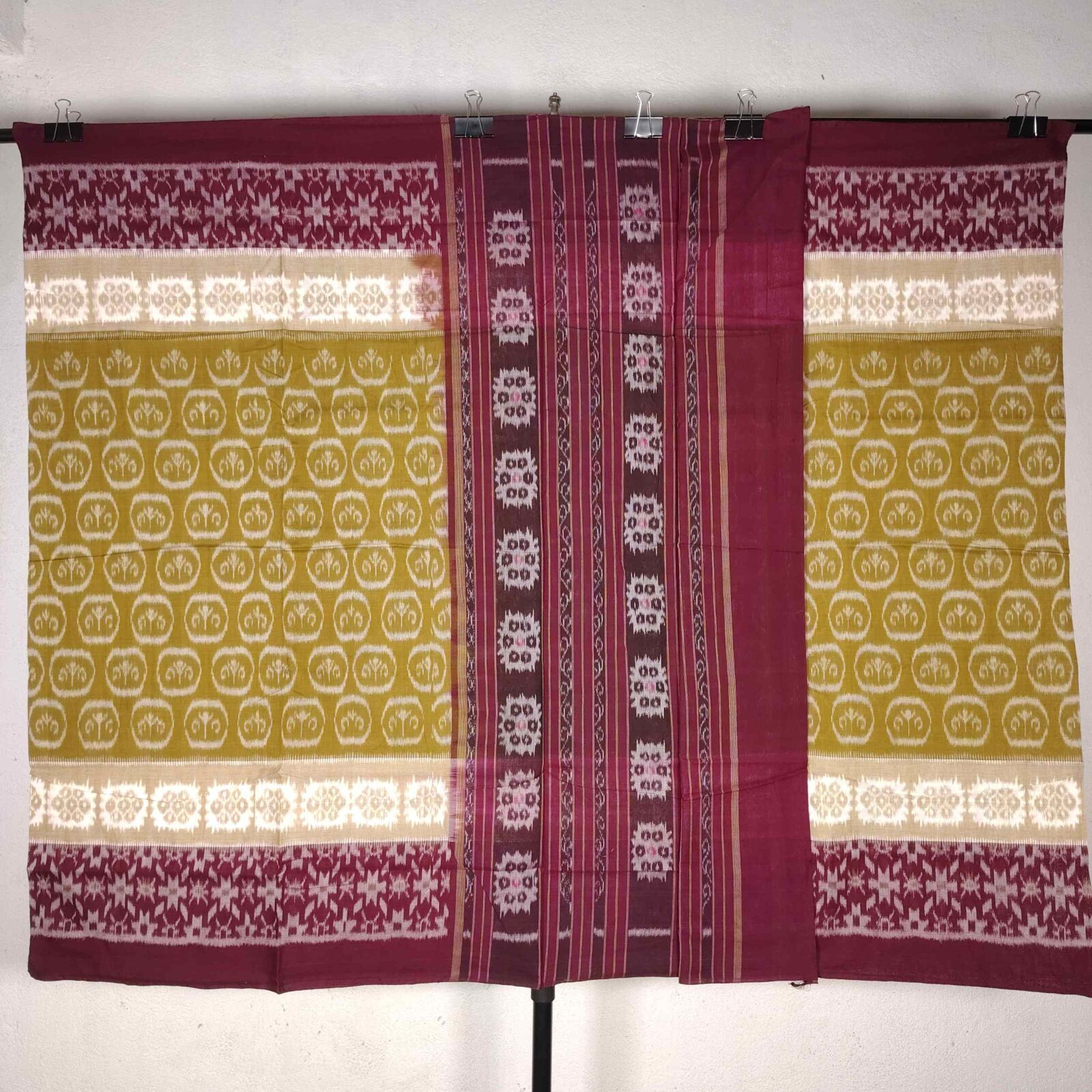 Mustard Yellow Maroon Unique Pattern Cotton Than Saree