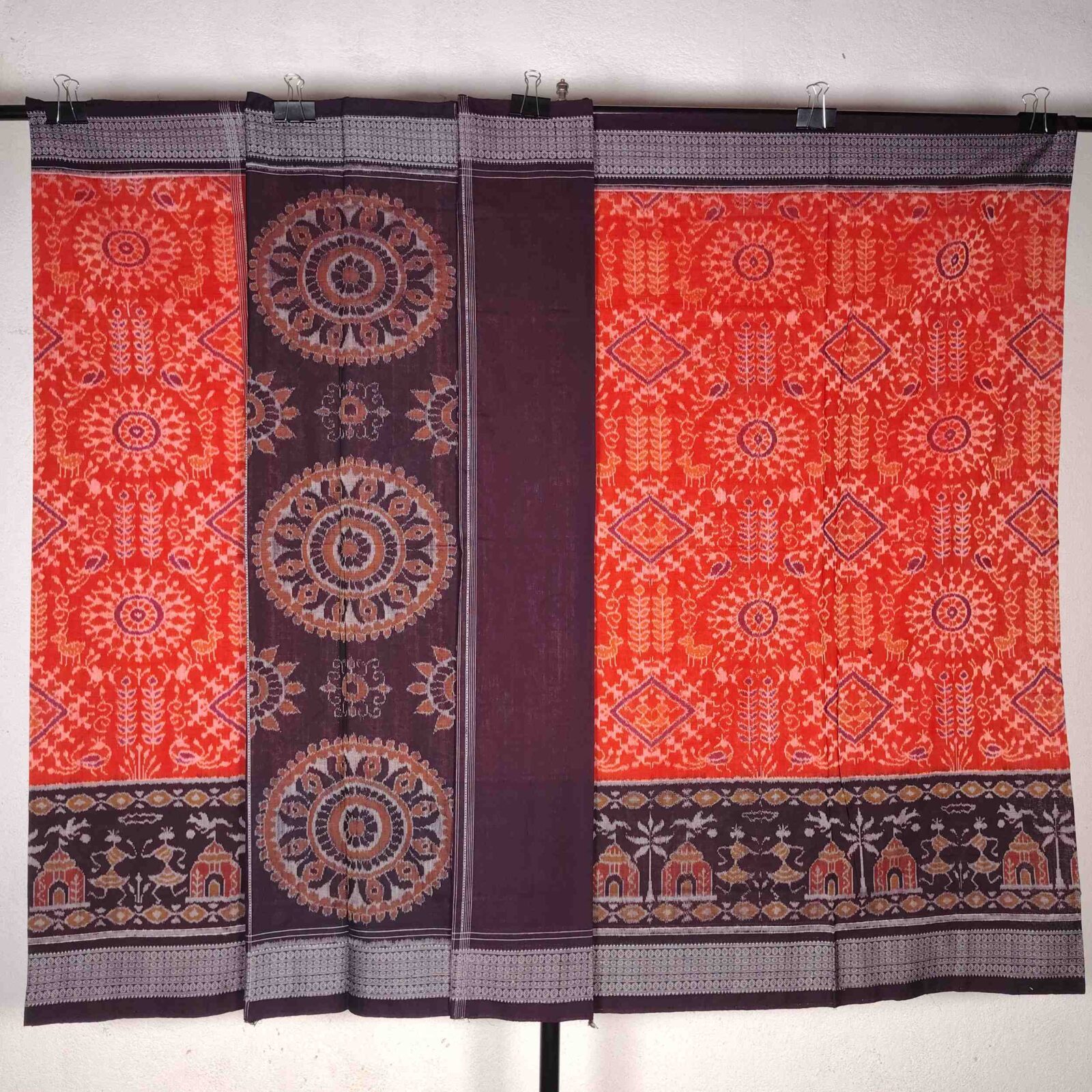 Orange Coffee Round Terracotta Pattern Cotton Saree