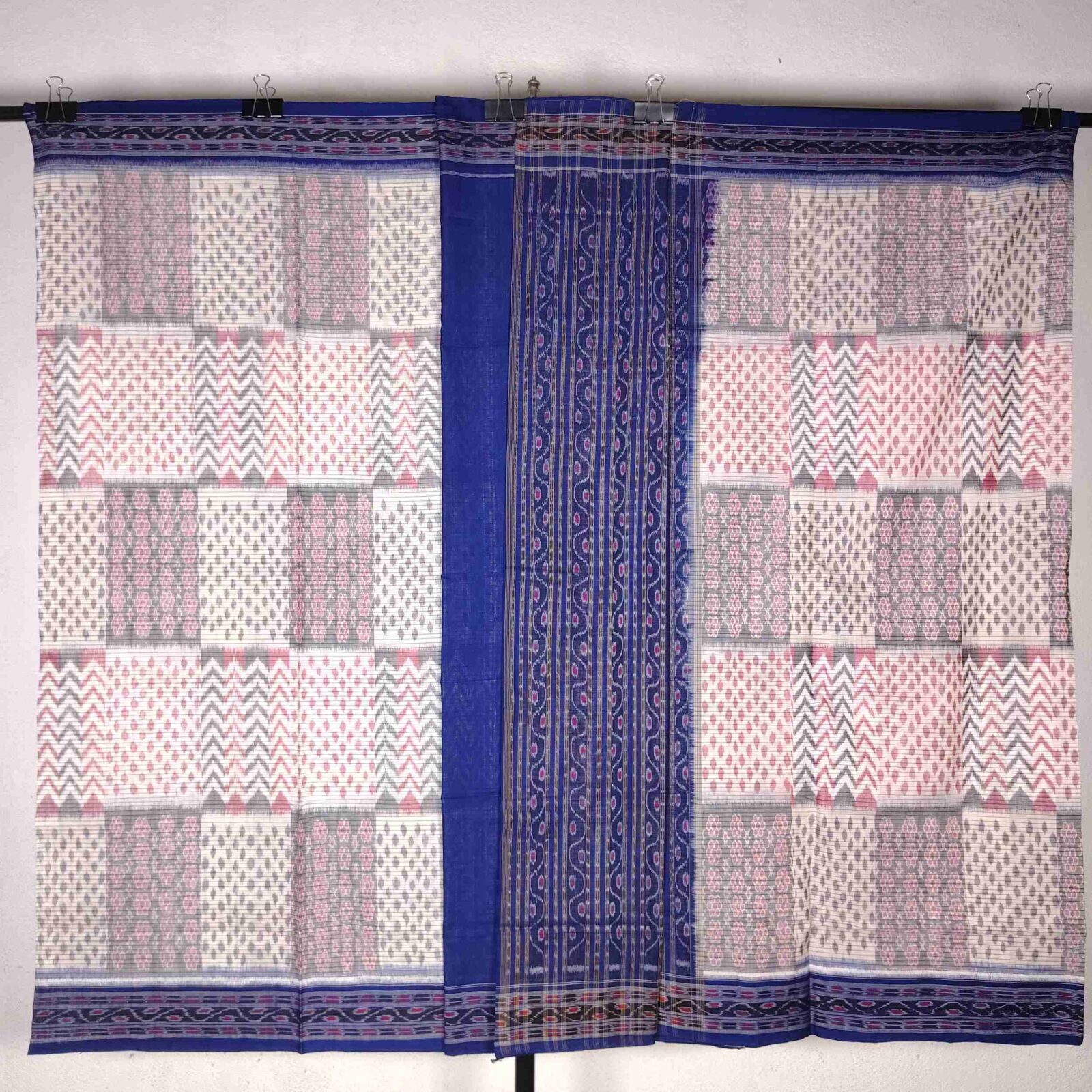 White Blue Unique Pattern Cotton Than Saree