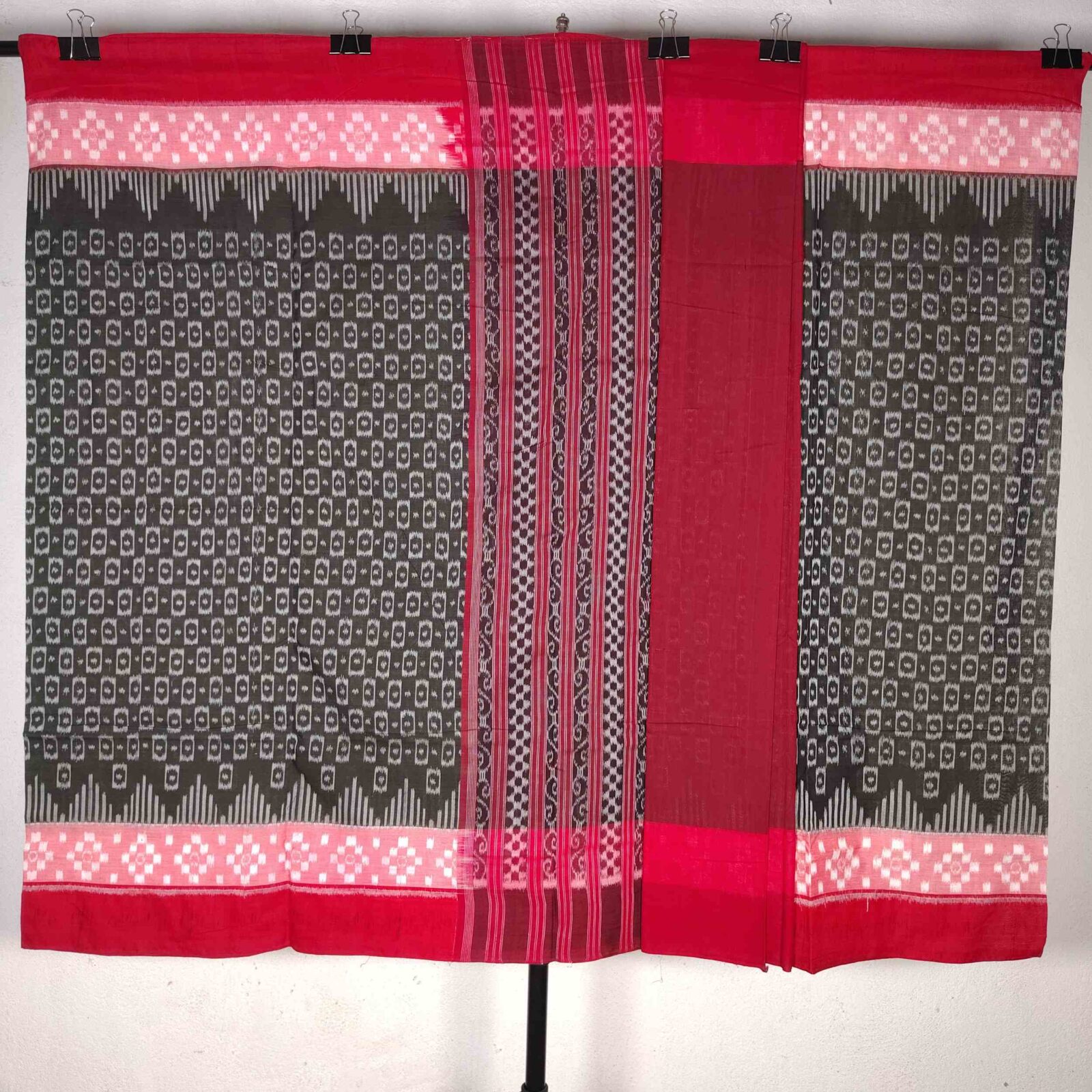 Black Red Simple Cotton Than Saree