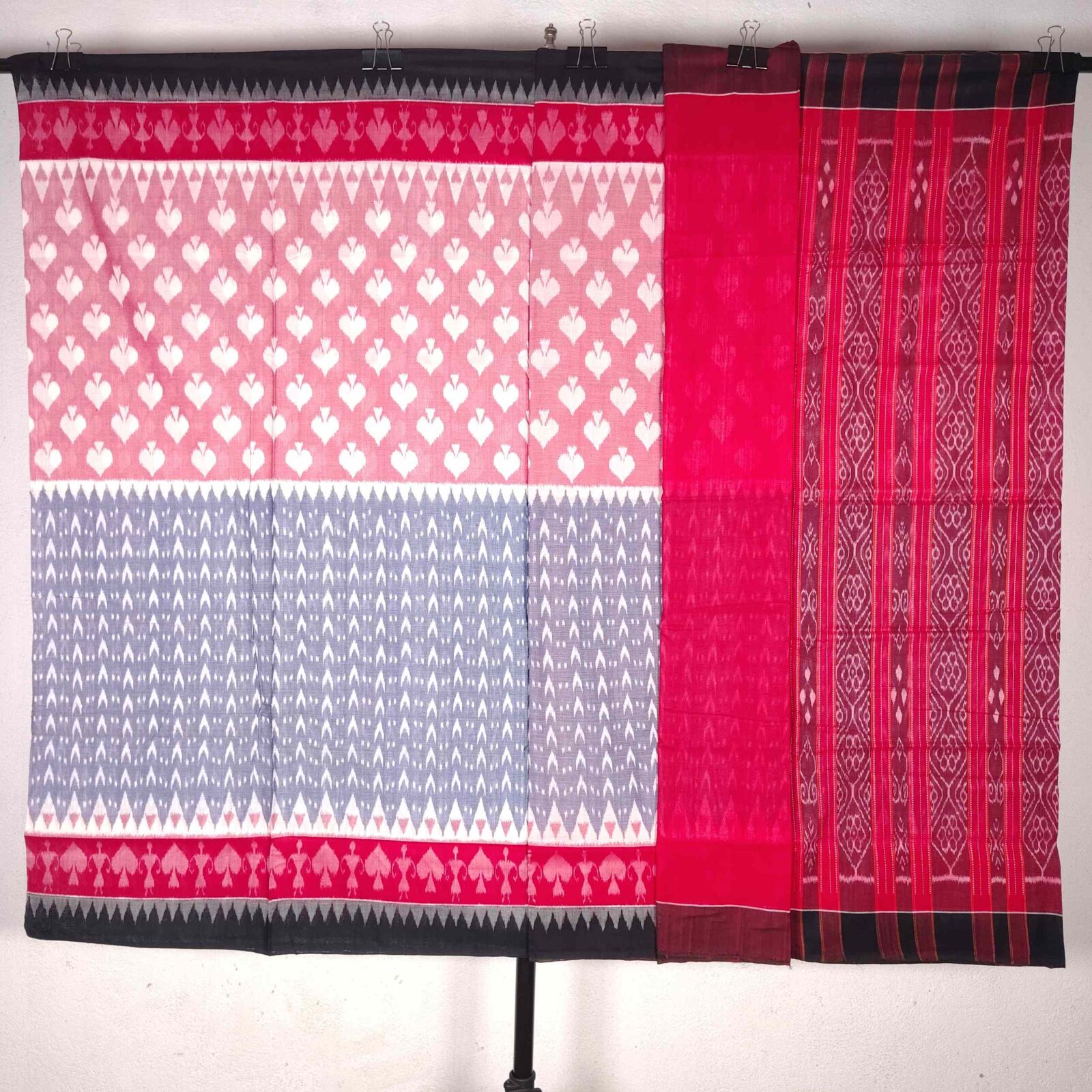 Red Black Unique Pattern Cotton Than Saree