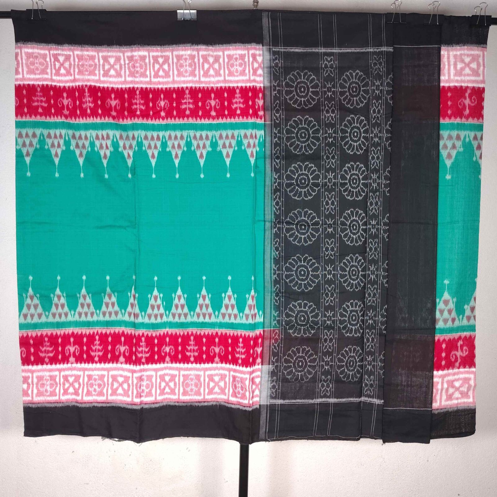 Rama Green Red Black Simple Cotton Than Saree