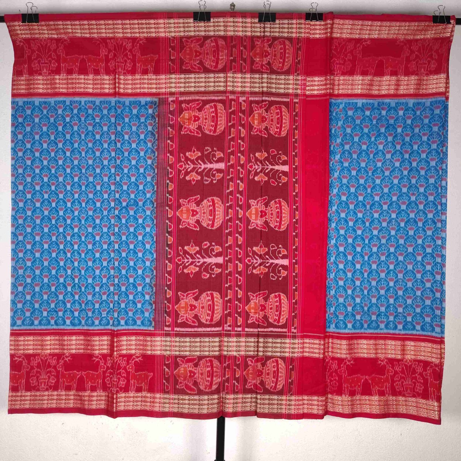 Light Blue Red Pattern Cotton Saree