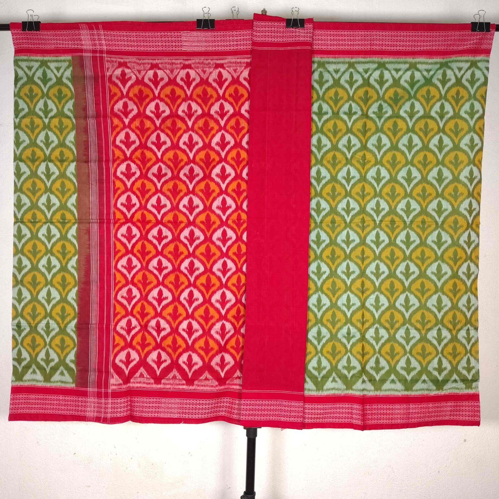 Green Red Leaf Pattern Cotton Saree