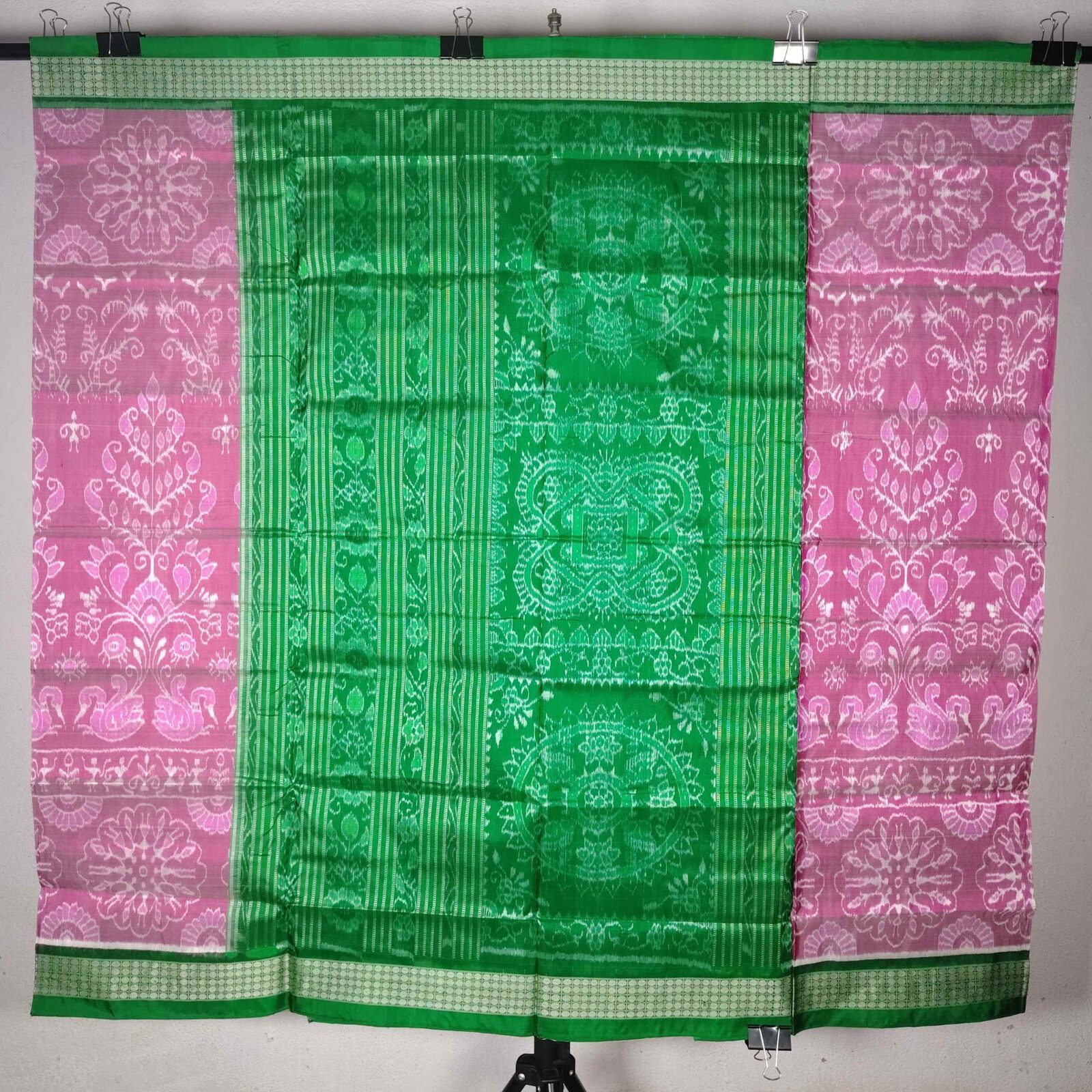 Light Pink Green Terracotta Sambalpuri Silk Saree