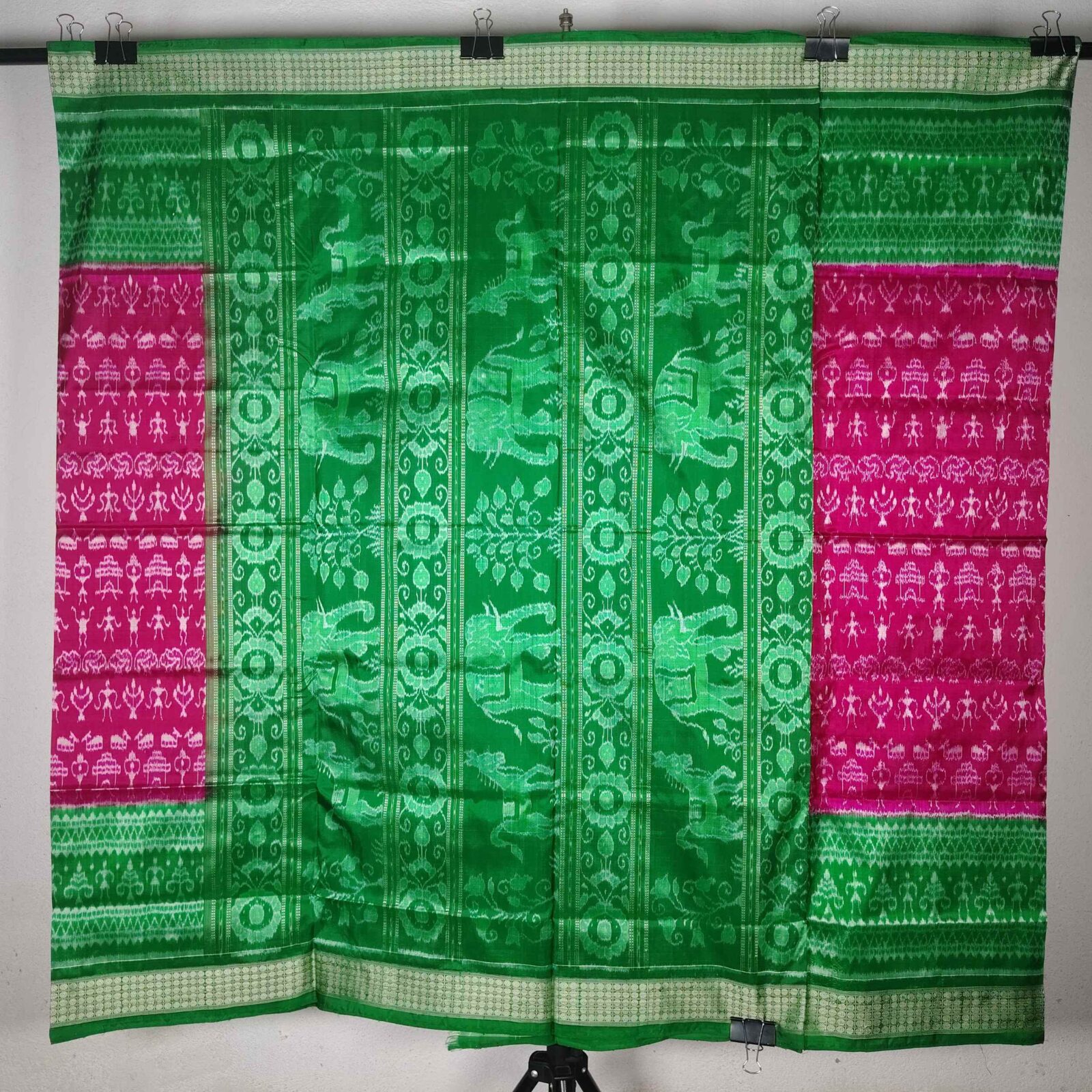 Pink Green Terracotta Sambalpuri Silk Saree
