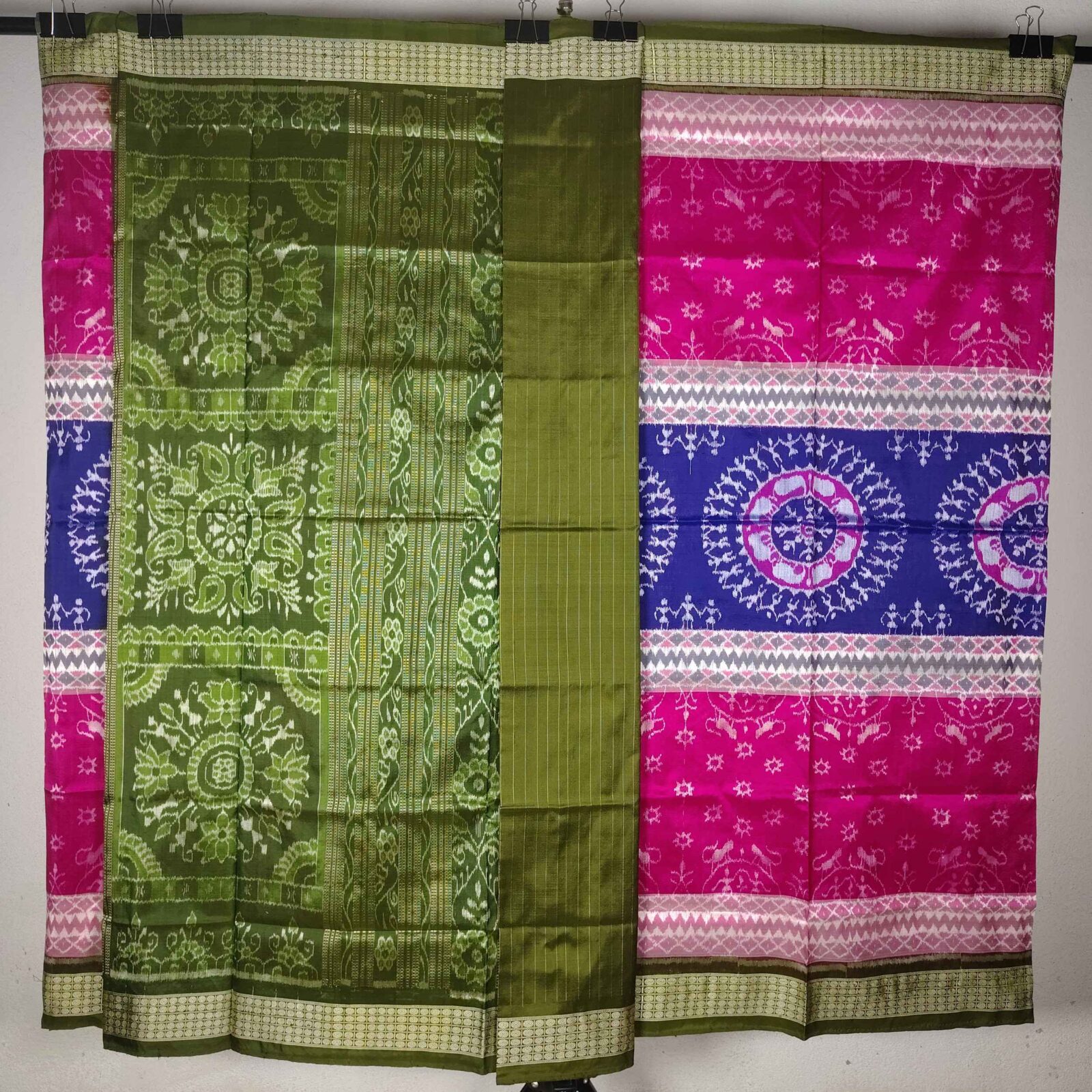 Pink Blue Olive Green Terracotta Sambalpuri Silk Saree