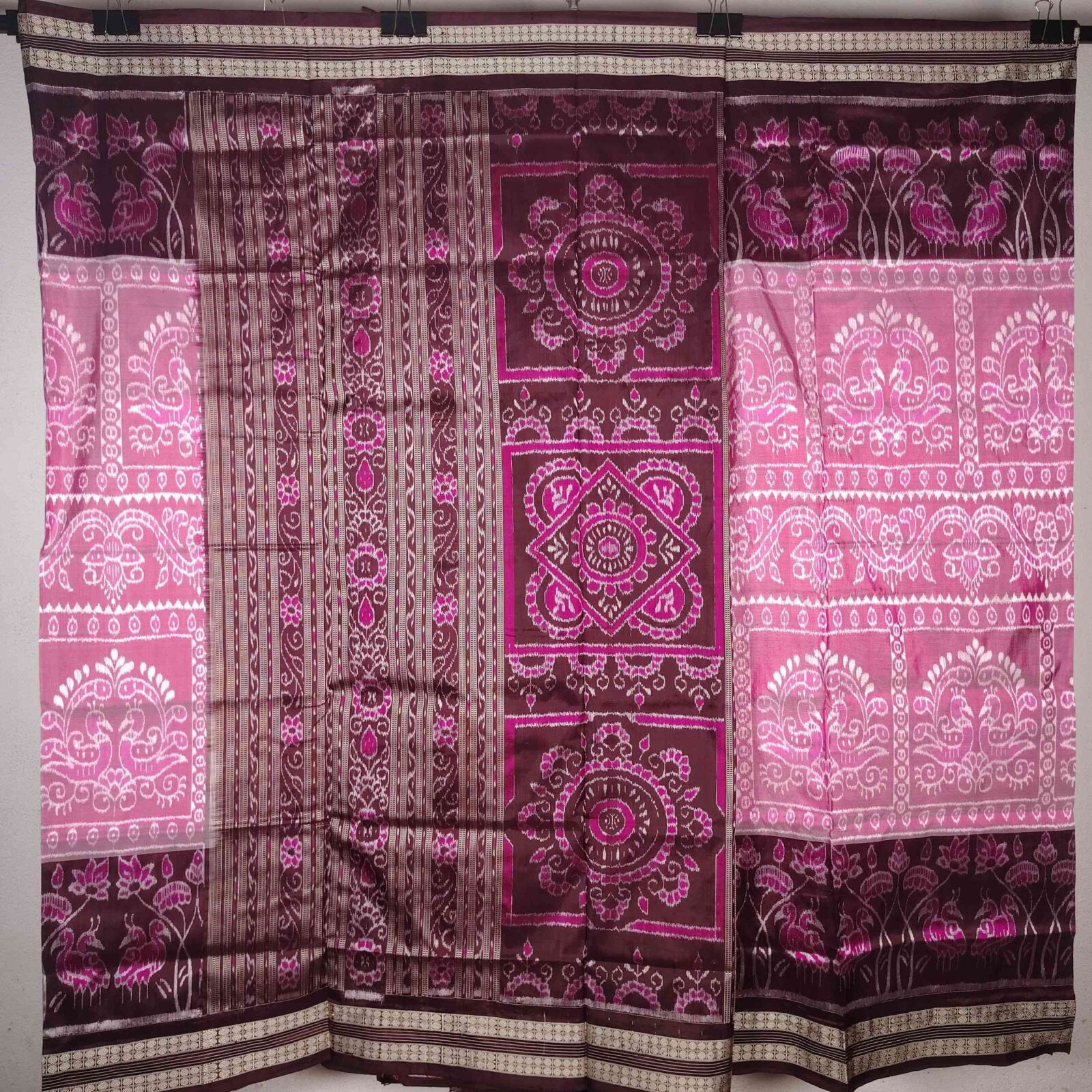 Pink Coffee Peacock Sambalpuri Silk Saree