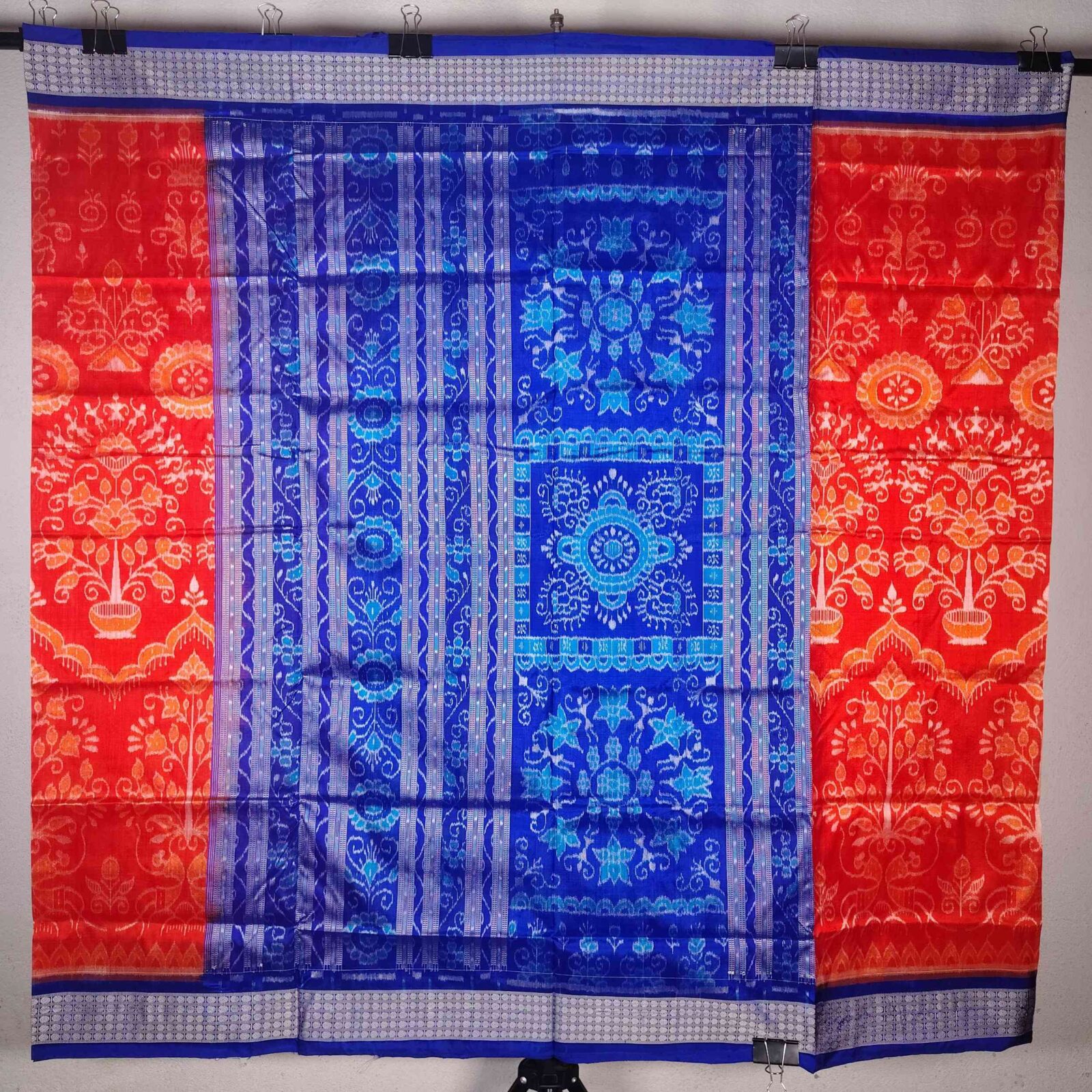 Orange Blue Terracotta Sambalpuri Silk Saree