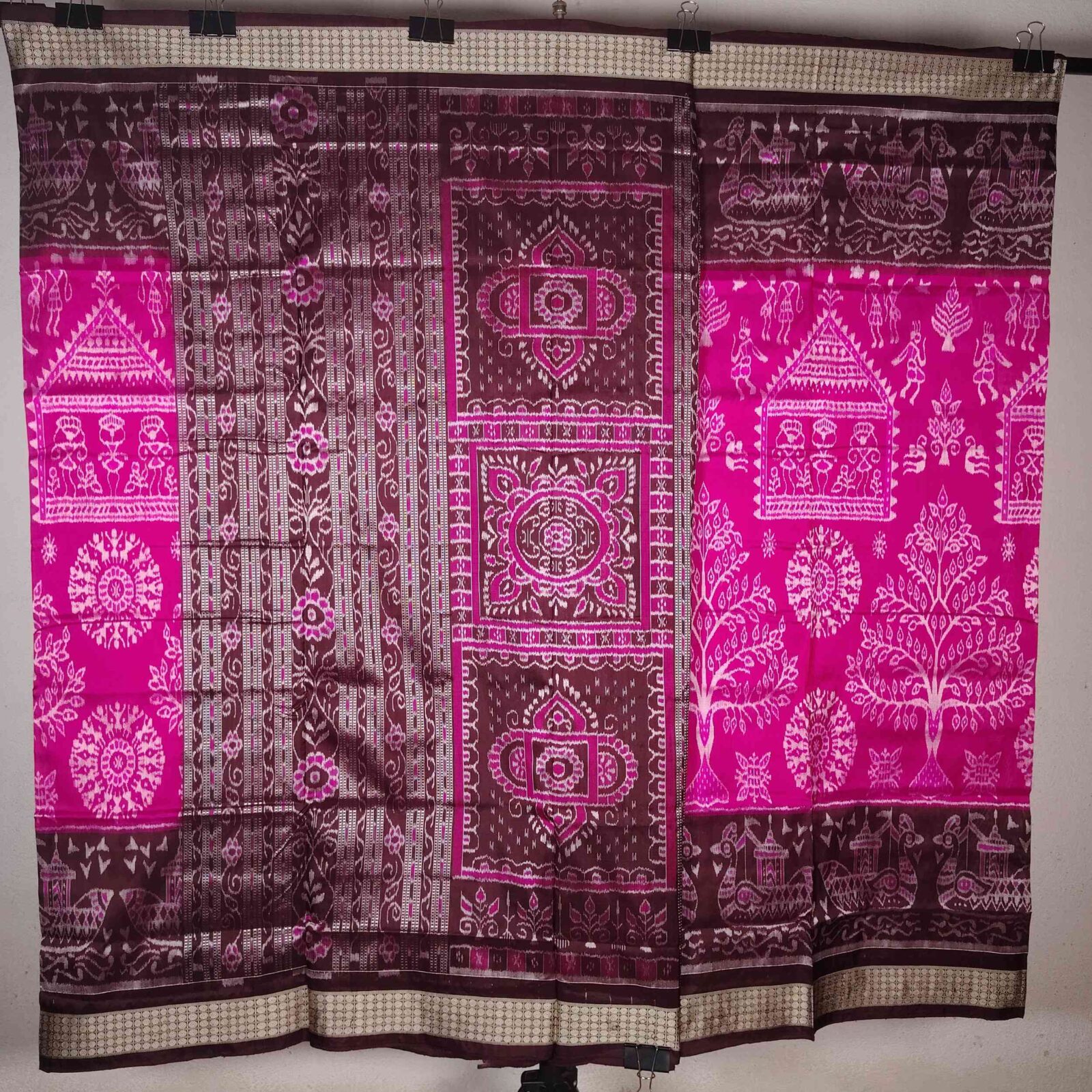 Pink Coffee Terracotta Sambalpuri Silk Saree