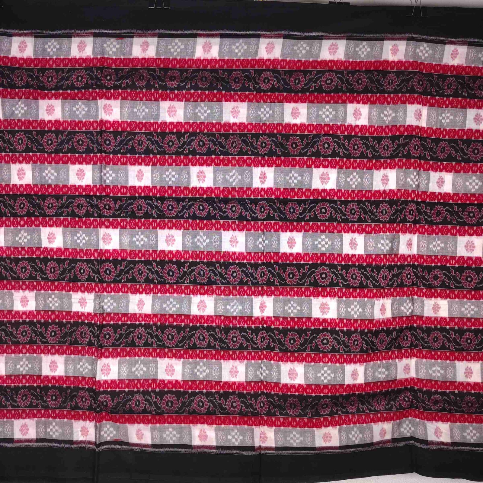 Grey Red Black Flower Sapta Cotton Dress Material (1 meter)