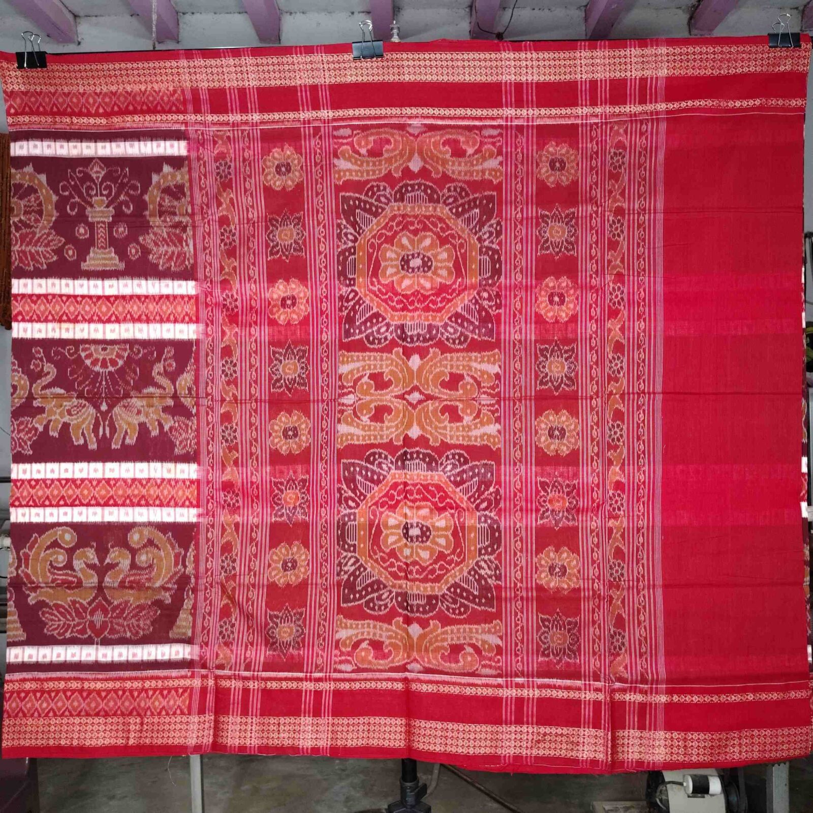 Maroon Red Elephant Swan Cotton Saree